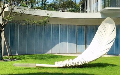 幾何塊面?玩兒的是抽象派!說白了,就是用方方、圓圓、三角這些基本幾何體,拼出個(gè)大致意思。啥材料都能玩這套,但目前最主流的是兩種?:金屬家族(不銹鋼板、鍍鋅板、鐵板),或者玻璃鋼。