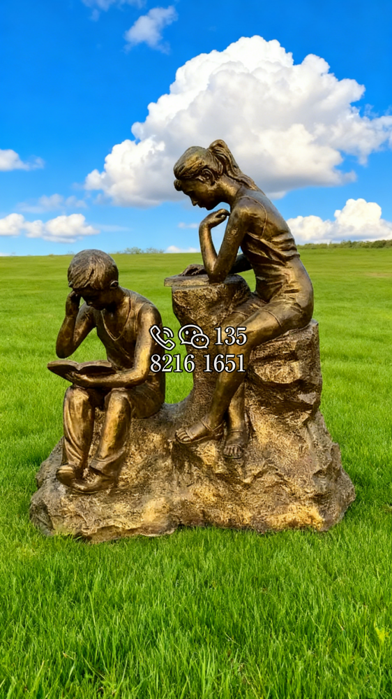 玻璃鋼仿銅看書學生雕塑